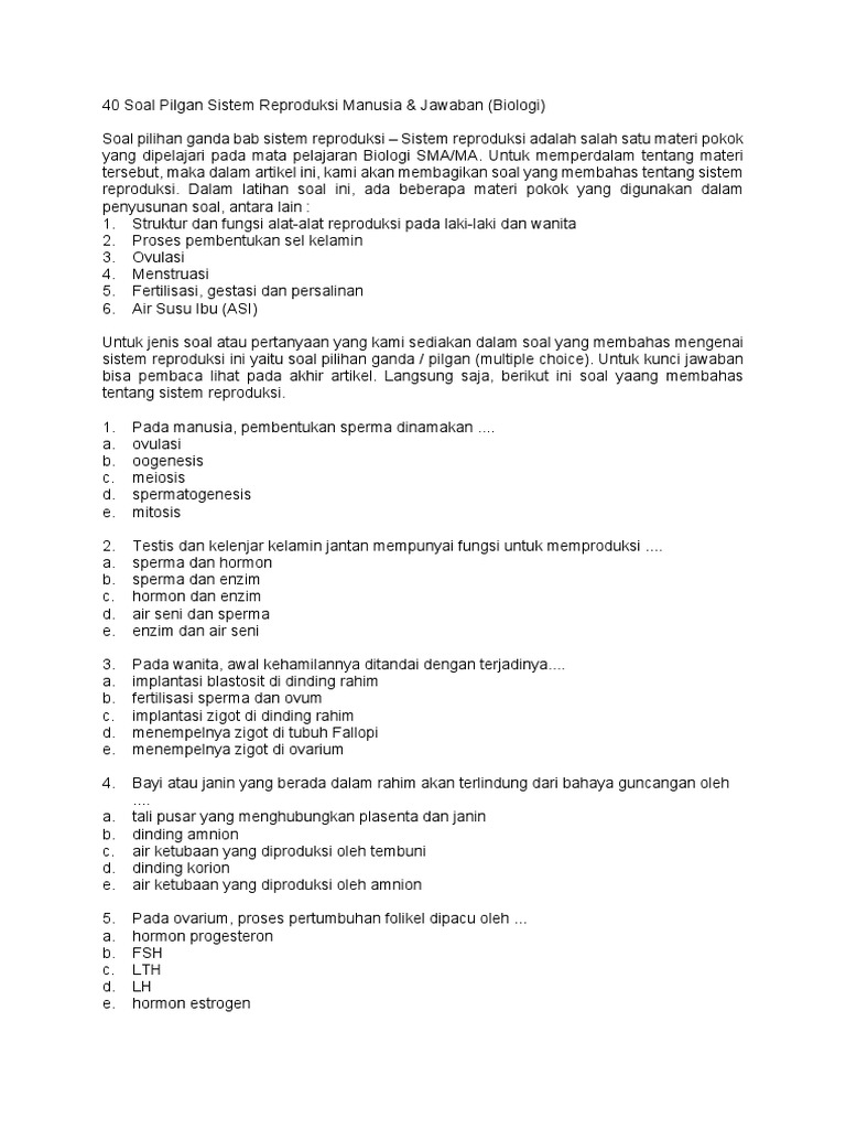 Soal Pilihan Ganda Tentang Sistem Reproduksi Manusia Beserta Jawabannya : 25 Soal Sistem Reproduksi Pilihan Ganda Dan Jawaban / Maybe you would like to learn more about one of these?. Check spelling or type a new query. Soal pilihan ganda tentang sistem reproduksi manusia beserta jawabannya. Maybe you would like to learn more about one of these? We did not find results for: