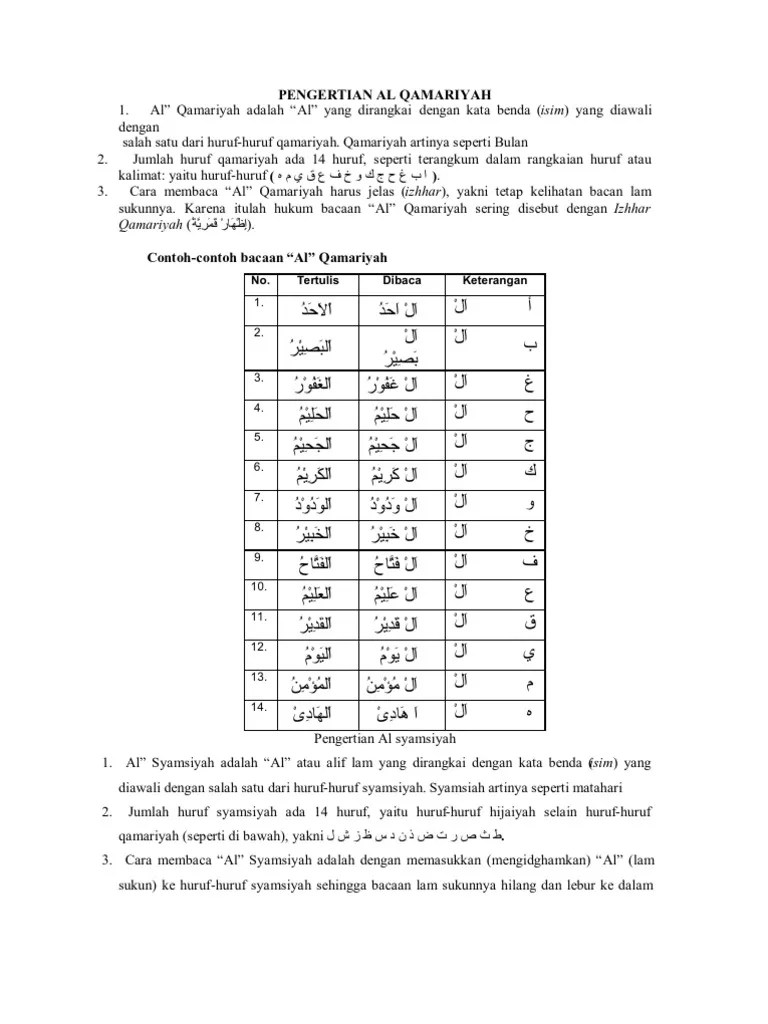 Siswa dapat menjelaskan pengertian al syamsiyah, al qamariyah dan. Terhadap hukum bacaan alif lam syamsiah dan alif lam. Upaya meningkatkan kemampuan siswa kelas v sdn 4 sintang. Yaitu alif lam qamariyah dan alif lam syamsiah. " 3,4.1 menjelaskan pengertian al qomariyah dan al syamsiyah.